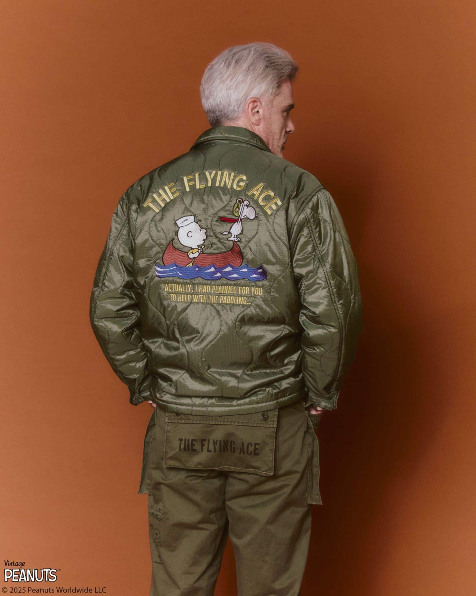 今年で50周年を迎える「AVIREX」と現在も75ヵ国、21の言語、2200紙で連載されており、世界中で愛され続ける人気コミックのPEANUTS(ピーナッツ)。そのコミックに登場する愛くるしいキャラクターのスヌーピーとその仲間たちをビンテージアートプリントや刺繍などで表現したエクスクルーシブモデル。